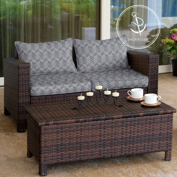 Bella-Dura® Skye Tweed Pacific is a bold white and dark blue chevron pattern. Manufactured by Wearbest Sil-Tex Mills, every Bella-Dura fabric is made with 100% Bella-Dura polyolefin. This material provides revolutionary performance against stains, mold/mildew, abrasion and fading while remaining fully recyclable. Bella-Dura’s unique 100% polyolefin blend creates a soft and sleek fabric without compromising comfort for extreme durability.