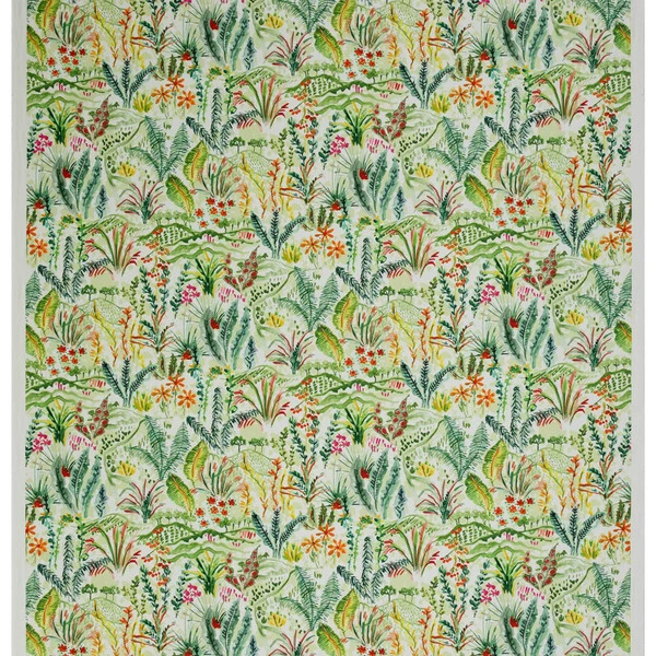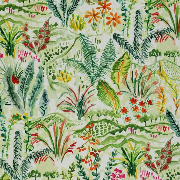 Hamilton Hillside Spring is an indoor-only upholstery fabric with an incredibly colorful floral/foliage pattern. The bright and cheerful leaves, flowers and trees that burst across this fabric will bring a warm and happy atmosphere to your home. Pair this upholstery fabric with coordinating fabrics in the Hamilton collection for a cohesive look throughout your home.