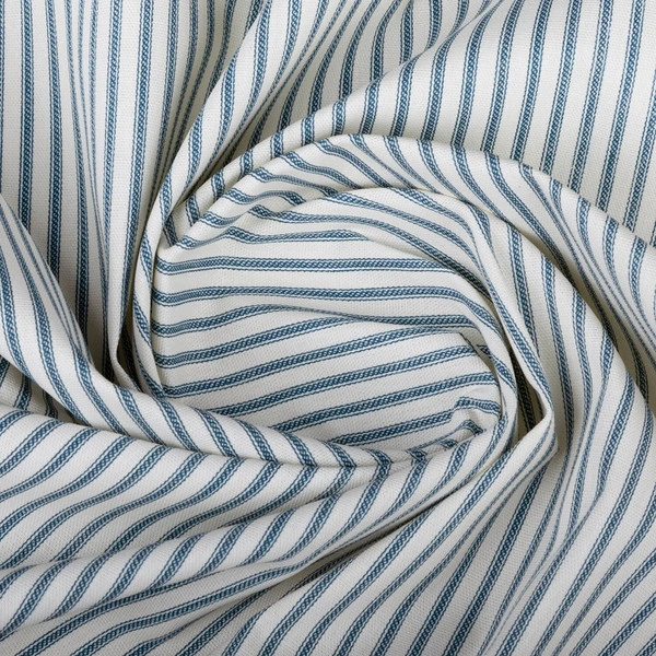 Magnolia Home Berlin Stripe Ocean is an indoor-only cotton print upholstery fabric. Featuring a blue coiled stripe pattern on a white background, this upholstery fabric will add a timeless, understated elegance to your home’s interior. Pair this upholstery fabric with coordinating fabrics in the Magnolia collection for a cohesive look throughout your home.