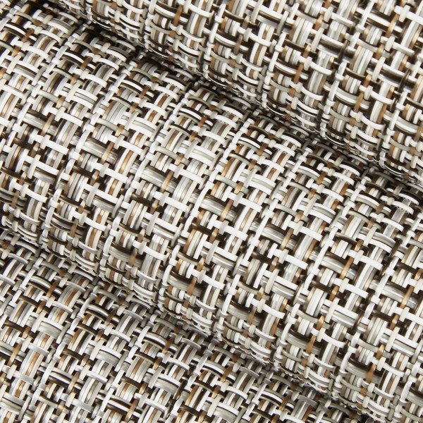 Phifertex® Wicker Weaves Vinyl Mesh Gannon Luxe is a stylish sling fabric from the Phifertex Wicker Weaves Collection. Fabrics from this collection are designed with dobby weaves to mimic the look of natural wood, rattan or wicker. Woven from 100% vinyl coated polyester, Gannon Luxe features a light gray weave with accents of black, stone and white. Phifertex Vinyl Mesh is specifically engineered for sling chair applications but is great for light filtering roller shades as well. Phifertex Gannon Luxe offers a shade factor of 93.3% and is GREENGUARD® Gold Certified for clean air quality.