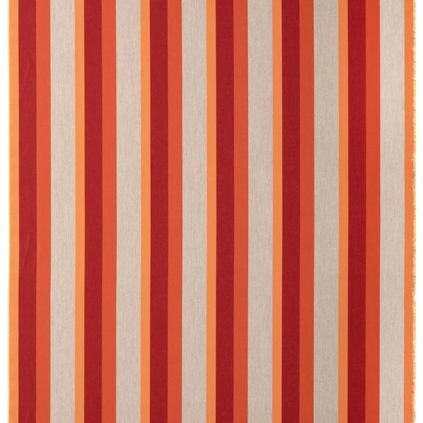 Sunbrella® Gateway Tamale is a woven upholstery fabric from the Sunbrella Perspectives Collection. This fabric features stripes in stone, red and shades of orange. Woven from 100% acrylic fibers, this fabric also boasts Sunbrella’s unmatched performance and durability.