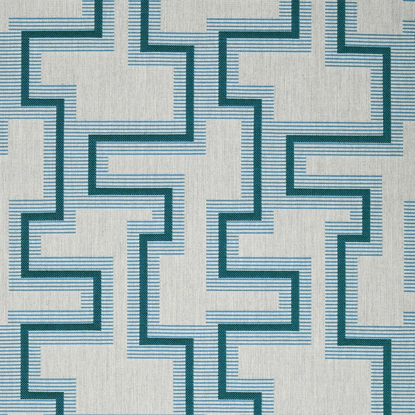 Add a pop of intriguing pattern to your indoor and outdoor space with Sunbrella® Resonate! As a contemporary interpretation of the classic Greek “key” pattern, this fabric features a mix of both bold and minimalist linework paired with subtle heathering for a truly one-of-a-kind look. Sunbrella Resonate Atlantis showcases a deep aqua and blue geometric design amongst a sleek gray fabric. This fabric is part of the Dimension Collection from Sunbrella, which creates a fresh environment by blending and reinventing familiar looks and creating fabrics that pair nicely with various Sunbrella collections.
