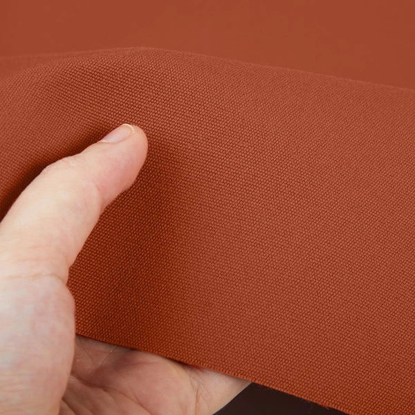 - Warm rust solid fabric.
