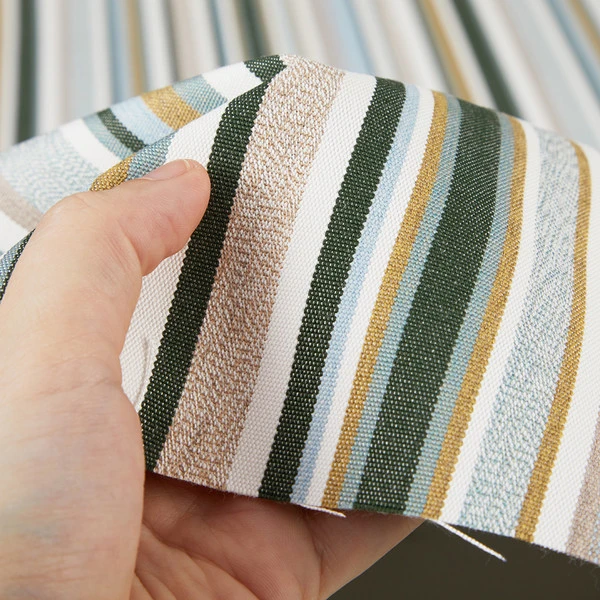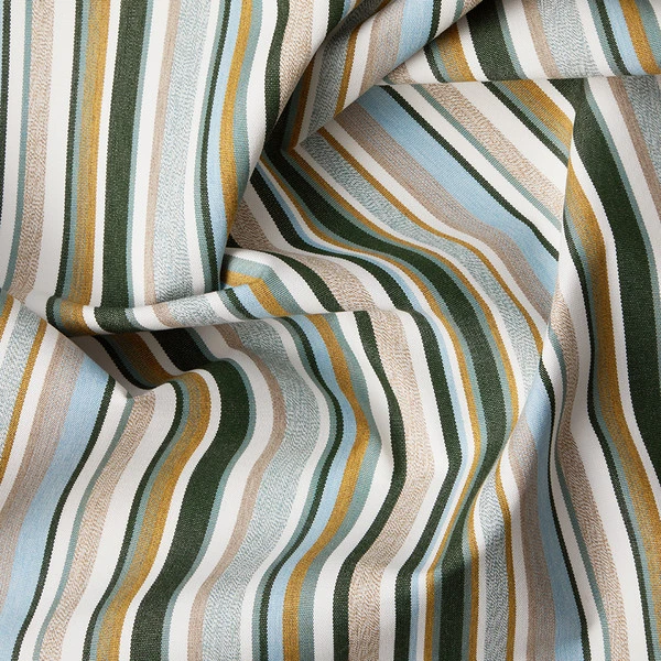 Sunbrella® Highlight Ivy is a contemporary striped upholstery fabric from the Sunbrella Emerge Collection. Fabrics in the Emerge Collection blend together effortlessly to make fabric selection easy. Layer this statement-making multicolored striped fabric with solids and subtle prints to bring your entire room together.