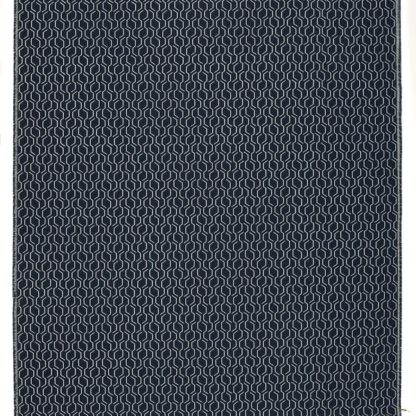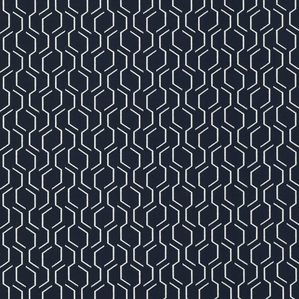 Sunbrella® Adaptation Indigo is a solution-dyed, woven upholstery fabric from the Sunbrella Makers Collection. This fabric features a metallic abstract geometric design set on a deep, navy blue background. Adaptation is woven from a blend of acrylic, polyester and PVC. The addition of PVC and polyester to Sunbrella’s acrylic yards gives this fabric added durability and abrasion resistance.