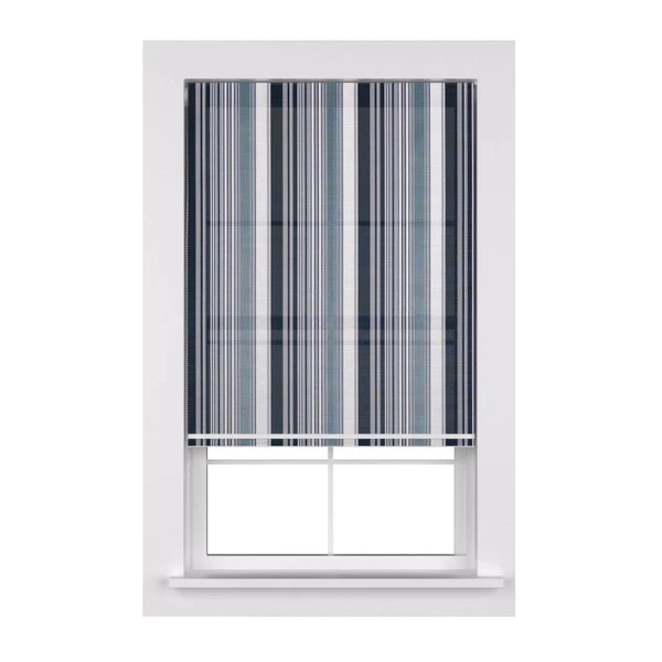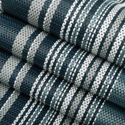 - 100% vinyl-coated polyester fabric in a striped pattern of blue tones, gray and white.